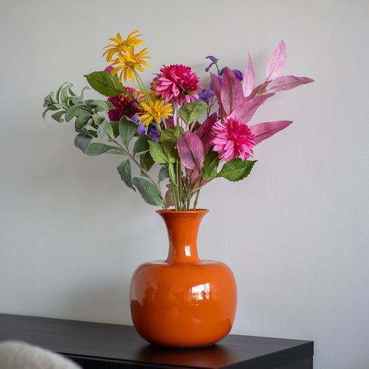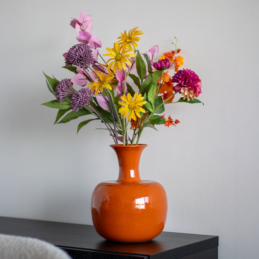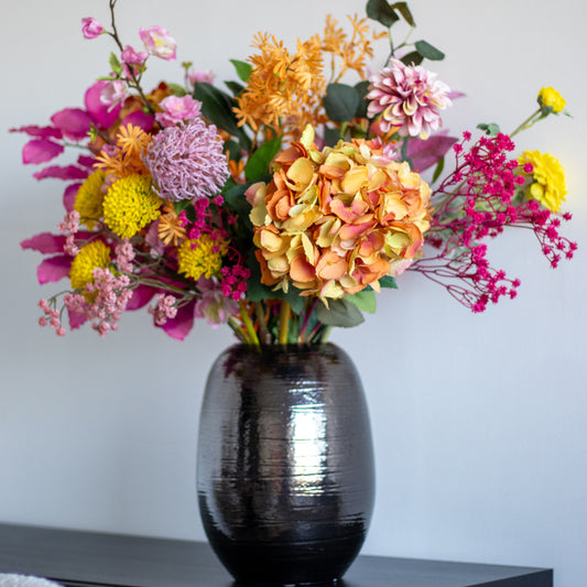 Uitverkocht UitverkochtZijden bloemen met vaas | Sunset BlissNormale prijs €159,95Normale prijsEenheidsprijs / per-